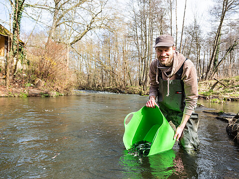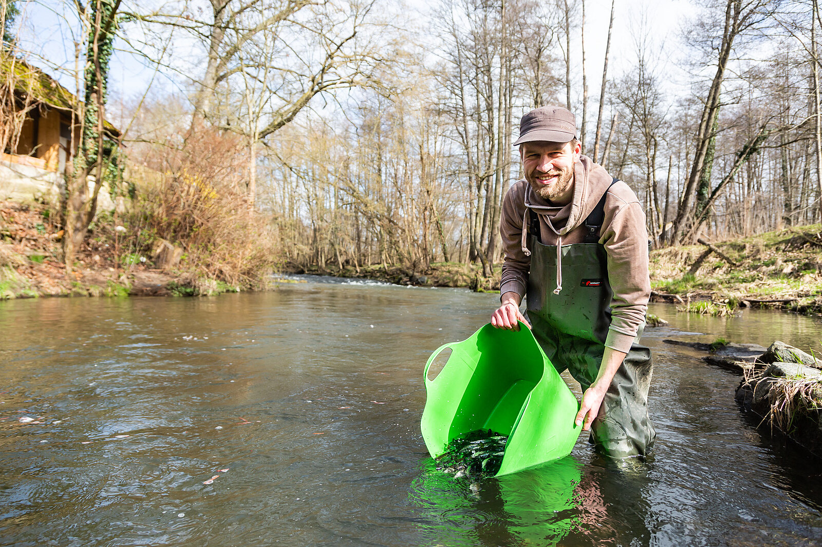 3000 Fische finden in der Wesenitz und 6000 in der Müglitz ihr neues Zuhause. Allerdings nur für einen Zwischenstopp. Die silbrigen Lachs-Smolts stehen kurz vor der Abwanderung in den Atlantischen Ozean. Durch die kurze Verweilzeit im Besatzgewässer sollen die Smolts eine Prägung erfahren und als erwachsene Tiere den Weg vom Ozean in das Besatzgewässer zur Paarung zurückfinden.